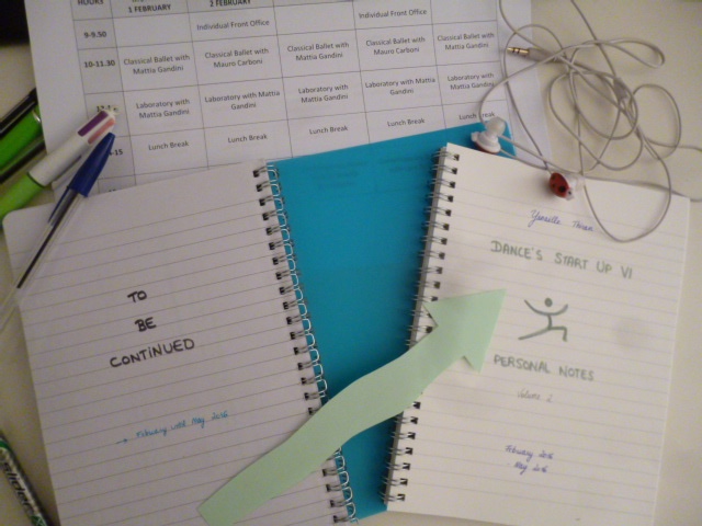 So here we are: exactly halfway through our training programme at Leggere Strutture. Today, just to mark the occasion, I wrote on the last page of the notebook I had started at the beginning of this course. And I bought a new one, which will be my dance diary for the next 4 months.