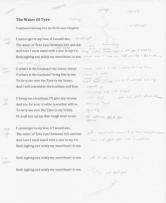 Pour préparer ces chorégraphies, je me suis basée sur les enregistrements que Lucy m’avait envoyés, ainsi que sur les paroles des chansons. Comme vous le voyez ci-dessous, je les ai annotées pour structurer chaque pièce :
