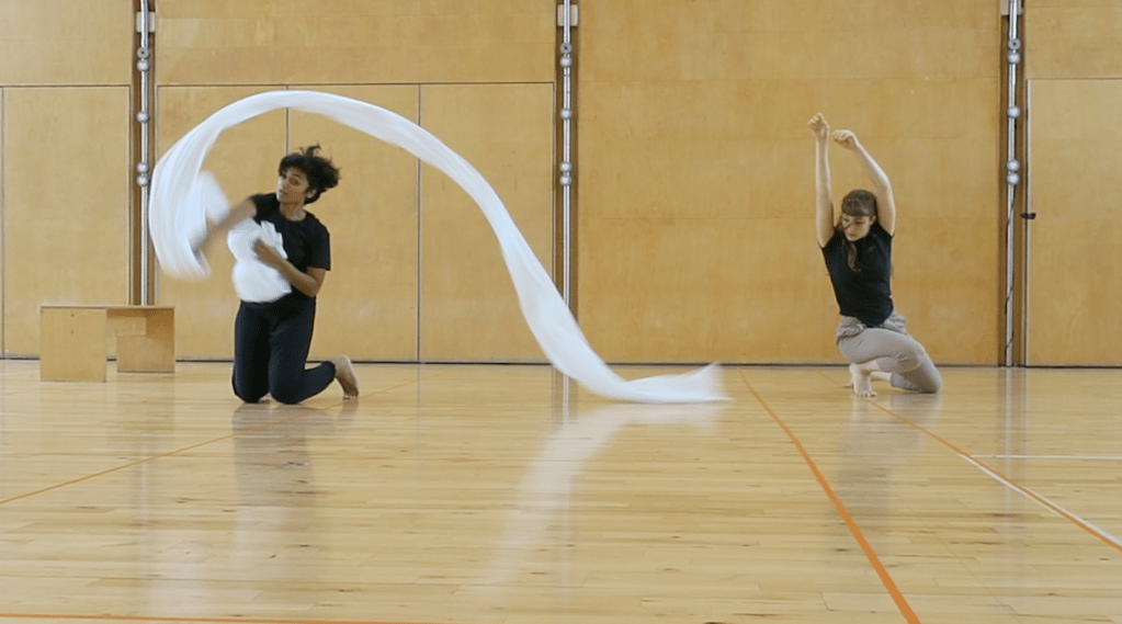 En deux mois, ce travail a abouti à deux formats : une vidéodanse et une performance scénique. La première version, filmée sur la plage d’Eastbourne, est une collaboration avec Harry Laundon, un jeune cinéaste local, et Ben Henry Edwards, musicien chevronné. La seconde a été mise en scène le mois dernier au théâtre Curve de Leicester, sans autre public que les jeunes artistes du projet Emerge et les techniciens du théâtre ! Je vous invite donc à découvrir ce spectacle inédit lors de son avant-première en ligne. La photo ci-contre, prise par Matthew Cawrey, vous en donne déjà un petit aperçu.