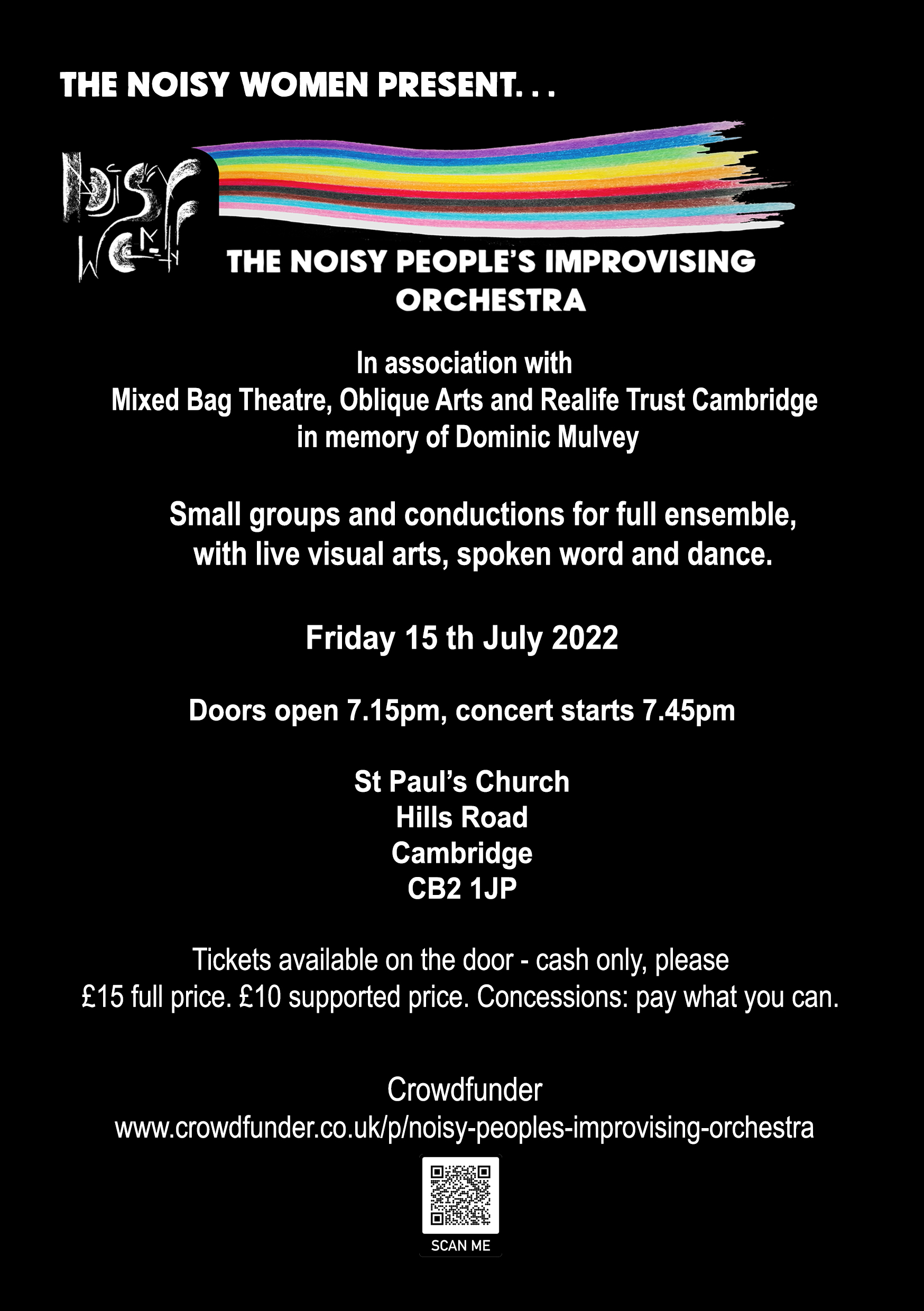 - 15/07/2022 at St Paul’s Church, Cambridge, with The Noisy People’s Improvising Orchestra, a group of 50+ musicians, vocalists and poets