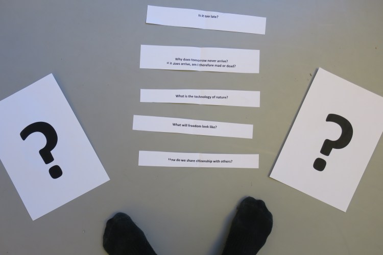 Questions in Motion is an exploratory, participatory dance duet in which audiences draw cards and read out questions that trigger the dancers’ responses, in the form of semi-structured improvisations. A flexible, engaging and intellectually stimulating dance work, Questions in Motion was commissioned by Whitechapel Gallery for the Youth Takeover: Visions of the Future, as part of the exhibition Is This Tomorrow? (14 Feb – 12 May 2019).